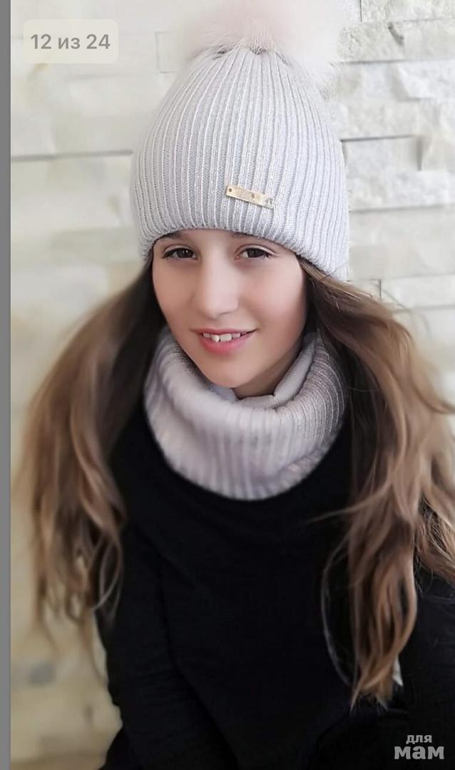 1944-1 шапка+снуд: трикотаж вязка мохер, эко мех синий состав 50%акрил 50%шерсть подкладка поляр 80%полиэстер 10%хлопок 10%шерсть размер 7-11 лет цена 2770 2500