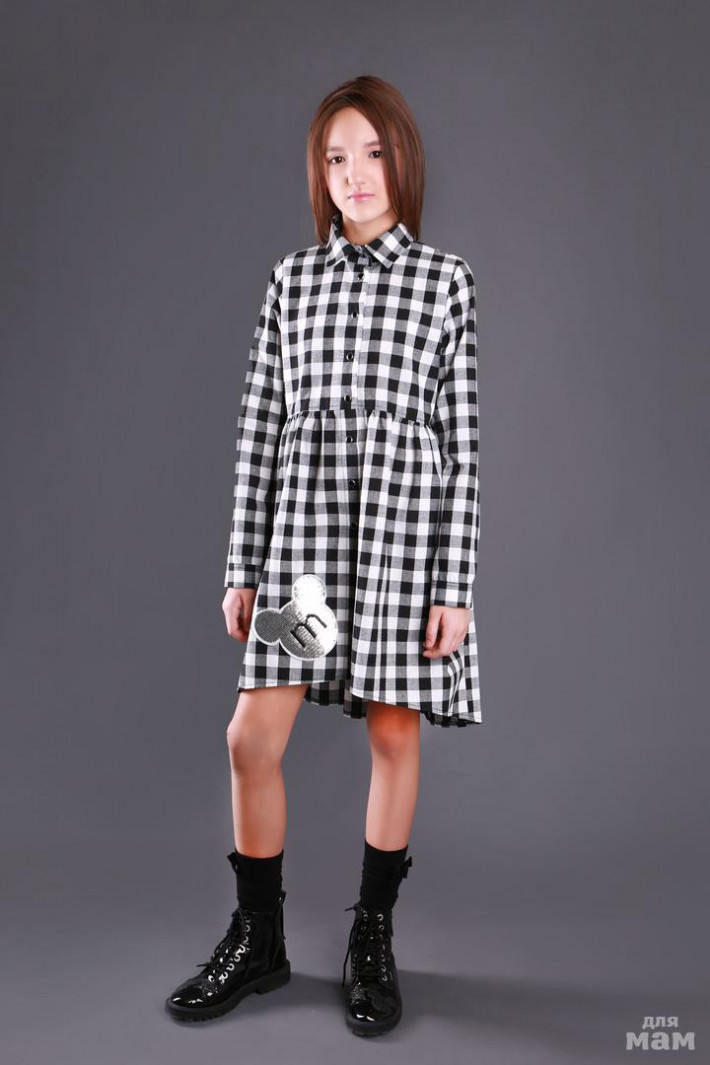 1918-2 платье котон, принт клетка, аппликация микки красный состав 100% хлопок размер 146-164 цена 2970 2590