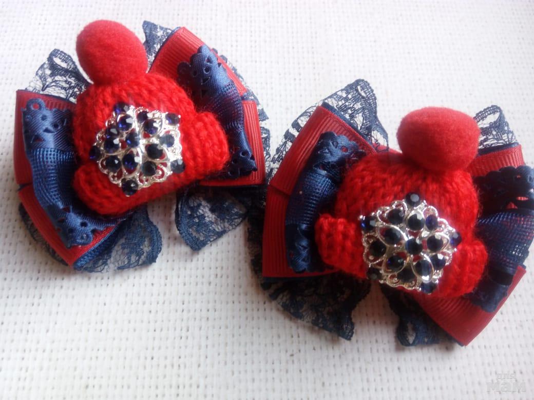 3) Очень красивые контрастные шапочки. Темно-синий+красный.