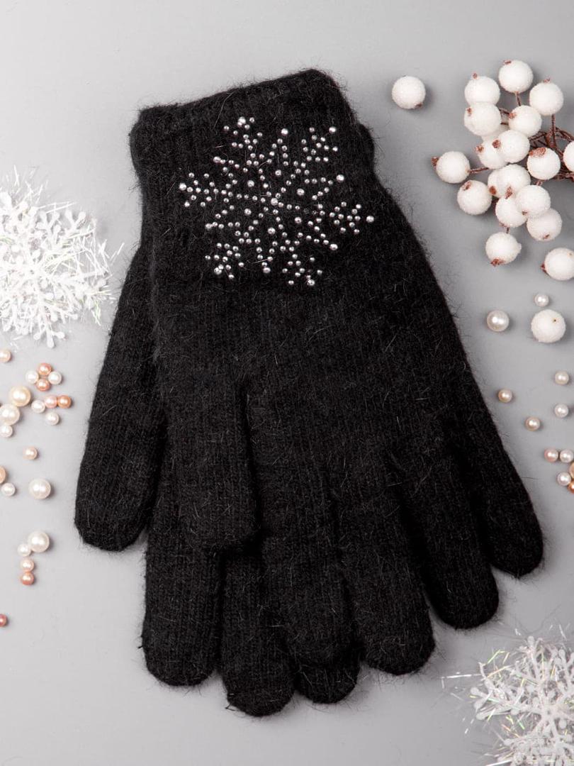 Перчатки двойной вязки, снежинка из страз - 197 руб.