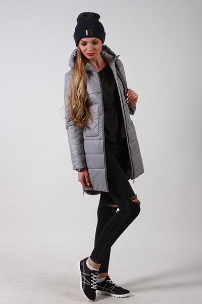 Молодежная куртка полуприлегающего силуэта с центральной застежкой на тракторную двухцветную молнию, а также с карманами на молнии, втачными рукавами и капюшоном, внутренняя часть капюшона выполнена из контрастной по цвету ткани . Длина куртки по спинке-ок.62 см, длина рукава-ок.64 см, рост модели 174 см.