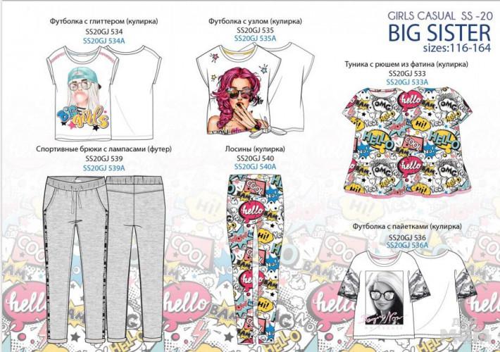 Фуфайка (футболка) д/дев Juno SS20GJ535 Big sister белый 116-164 см цена 370р Размер 140