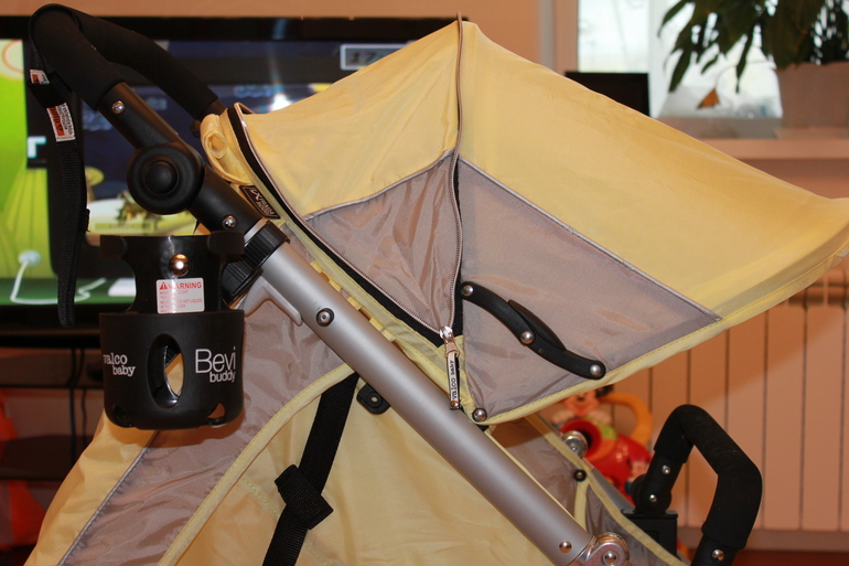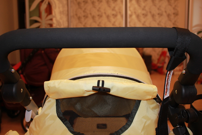 Ручка и бампер сделаны из какого-то мягкого приятного материала, похожего на пароллон. Мне после кожаной ручки непривычно, так как пачкается и собирает пыль и мелкий мусор. Особенно это касается владельцам домашних животных. У нас кот, шерсть летает в воздухе и оседает на эти части. Без липучки на улицу не выходим.))) Ручка регулируется по высоте. Бампер имеет 2 положения- вверх-вниз.