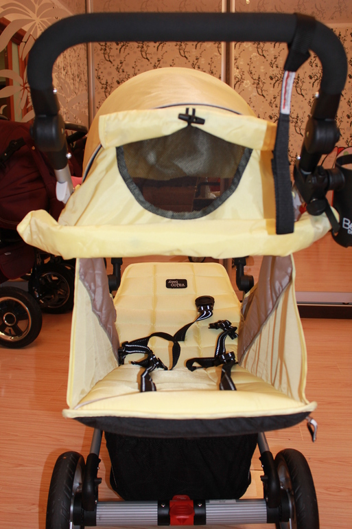 Про колеса отдельный разговор. То, что пишут коляска едет бесшумно, не могу согласиться полностью! Поворотные колеса гремят. После настоящих резиновых это ощутимо. Пока меня этот звук немного раздражает, просто надо привыкнуть, наверно...А гремят они скорее всего, что центр тяжести приходится на большие колеса, те едут здорово и тихо. Поворотным колесикам не хватает веса, вот они и гремят. По идеально ровной дороге едет бесшумно. Вообще колеса очень легко моются, протираются за 3 минуты! Для меня это огромный плюс, так как всегда держу коляски дома. Не люблю по подъездам бросать! Сама по себе Zee легкая, маневренная. На остановках нужно обязательно ставить на тормоз, ибо она может ехать. В комплекте имеется страховочный ремень.
