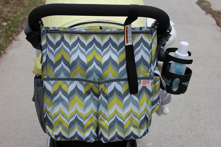 Сумку для мамы долго выбирала, думала по цвету, черную никак не хотела, хотя она хорошо бы вписалась в цвет корзины и ручки. Но что-то меня понесло на серо-желтый - у коляски сбоку на капе есть серая полоса, ну и основной цвет желтенький.)) Вообщем сумка фирмы Skip Hop с креплениями на коляску! Для меня очень удобная.