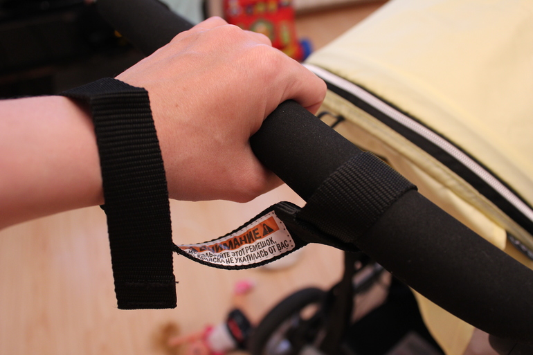 Ручка и бампер сделаны из какого-то мягкого приятного материала, похожего на пароллон. Мне после кожаной ручки непривычно, так как пачкается и собирает пыль и мелкий мусор. Особенно это касается владельцам домашних животных. У нас кот, шерсть летает в воздухе и оседает на эти части. Без липучки на улицу не выходим.))) Ручка регулируется по высоте. Бампер имеет 2 положения- вверх-вниз.