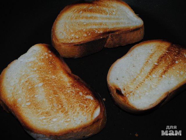 Ставим сковороду на средний огонь и выкладываем хлеб.