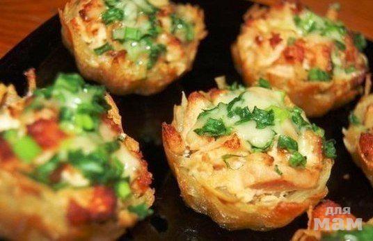 ТАРТАЛЕТКИ ИЗ КАРТОФЕЛЯ И КУРИНОГО ФИЛЕ (я делала и с пережаренными грибами, тоже очень вкусно)
