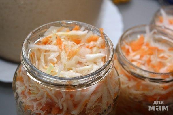 Сейчас так капусту делают многие. Раньше делали обычным способом, приходилось ждать пока она забродит, начнёт киснуть. А этот способ быстрый. Капуста вкусная, витаминная. ХРУСТЯЩАЯ). Берём из расчёта три килограмма капусты. Капусту нашинковать. Натереть три крупные морковки на крупной тёрке. Выдавить из чесночницы 3-4 зубчика чеснока. Всё перемешать. Делаем маринад: Полтора литра воды ставим на огонь. Добавляем 200 гр.сахара, 3 столовые ложки соли( без верха), 250 гр. подсолнечного масла.Когда закипит влить 200 гр. уксуса 9%. Должно покипеть 2-3 минуты. Маринад готов. Заливаем капусту горячим маринадом (Капуста от этого чуть смягчается. Но только чуть-чуть. Поэтому не бойтесь заливать горячим, прямо с плиты. Капуста постоит в этом маринаде часа 2. Перемешиваем. Даём постоять 2 часа. Опять перемешиваем и фасуем в банки. Ну и на сладкое: