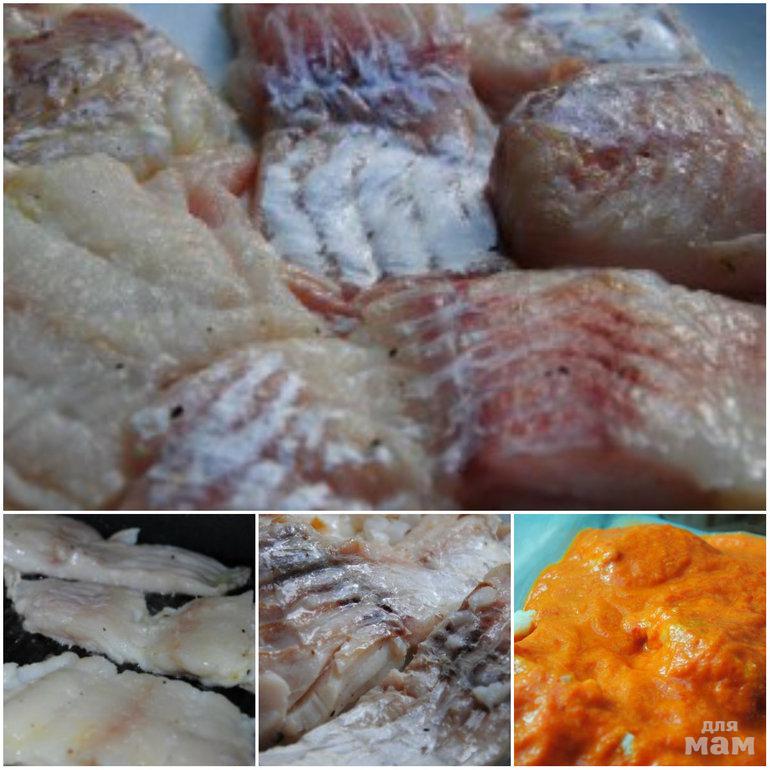 В порционные тарелки кладем кусок рыбы и сверху - соус.