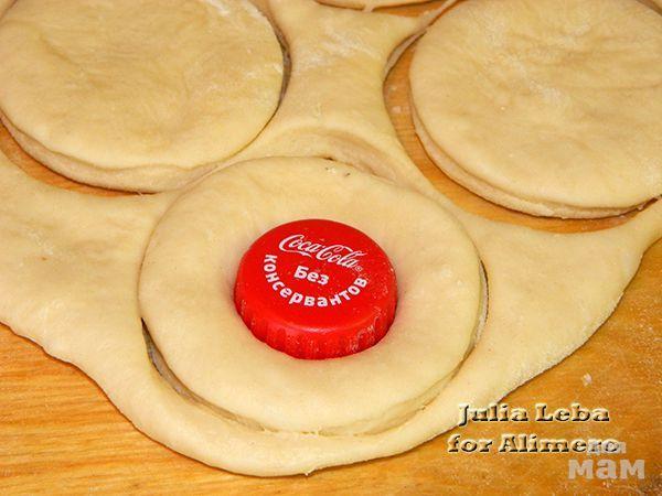 Разделила на части, каждую из которых раскатала толщиной около сантиметра. Стаканом с острым краем вырезала кружки.