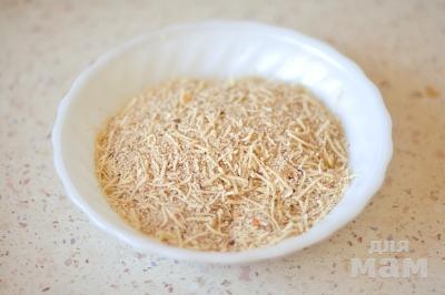 Смешайте панировочные сухари, мелко натертый сыр, итальянскую приправу (или любую другую по вашему вкусу), чесночный порошок, соль и черный молотый перец.