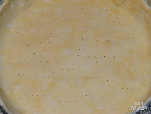 Вилкой делаем на дне дырочки и ставим тесто в духовку на 10 минут.