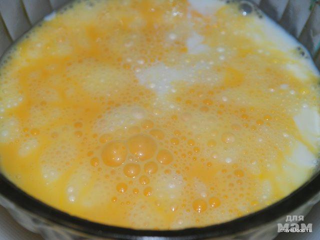 Яйца взбиваем в миске, добавляем молоко, снова хорошо взбиваем.