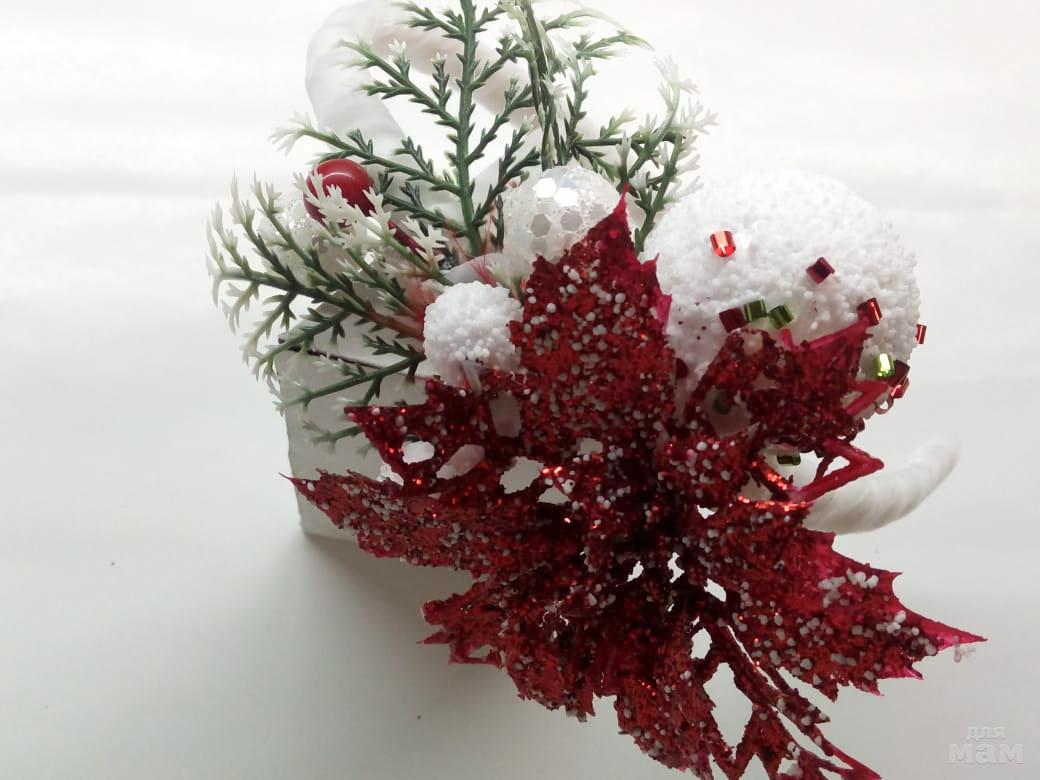 1) Ободок "Новогоднее чудо". Обтянут белоснежным пушистым бархатом, что создало вид пушистого снега . Усыпанные первыми снежинками и веселыми конфетти элементы декора, придают всей композиции ощущения приближающего праздника.