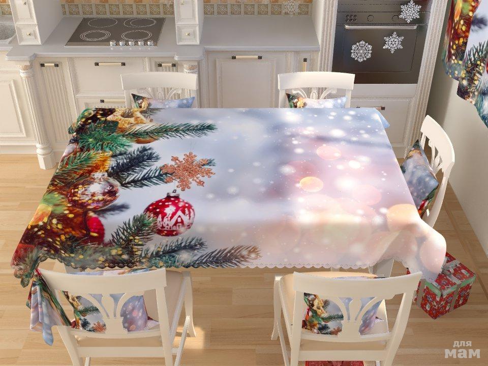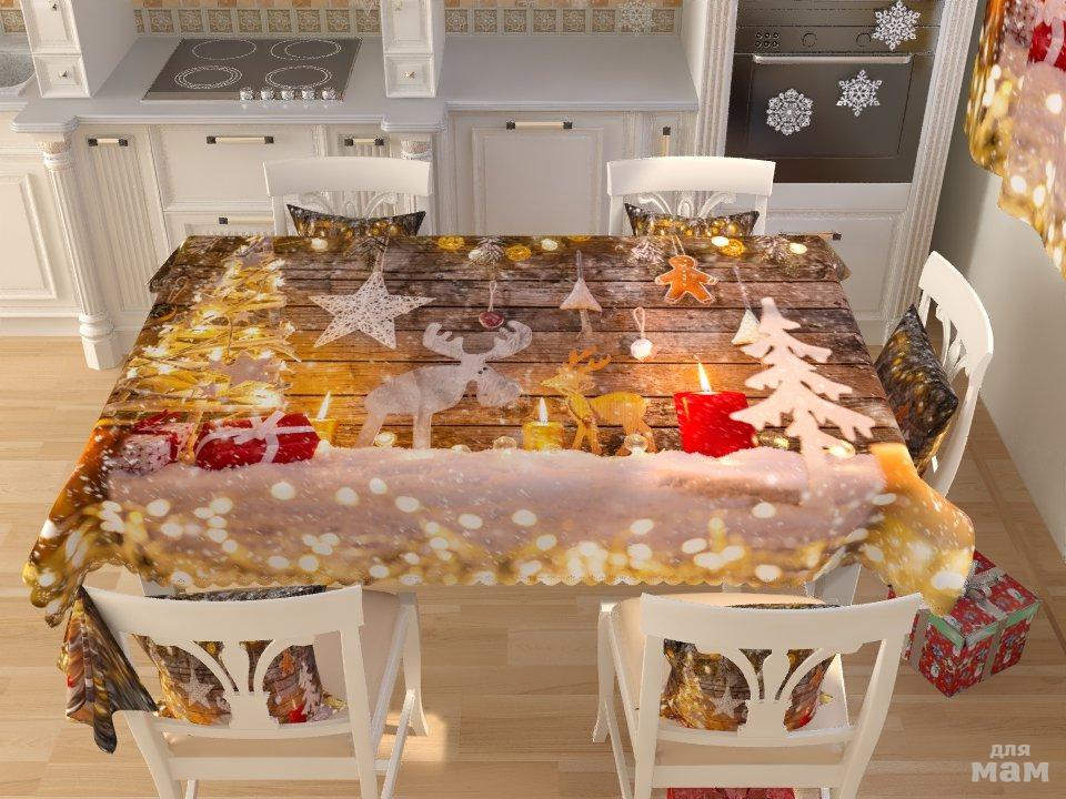 Новогодние фотоскатерти станут прекрасным украшением праздничного стола и послужат идеальным дополнением к фотошторам с таким же изображением.