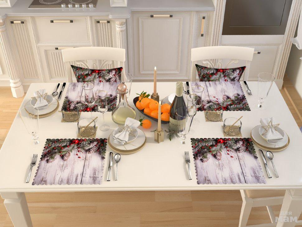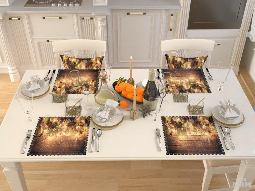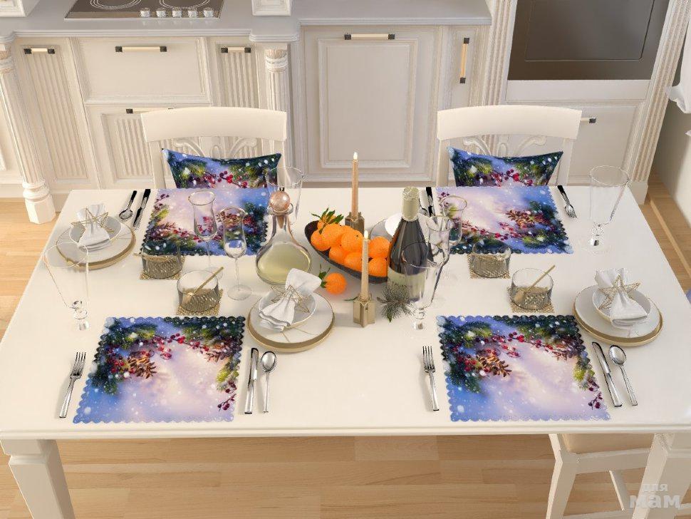 Комплект новогодних салфеток станет великолепным украшением новогоднего стола и поможет создать настоящую праздничную атмосферу