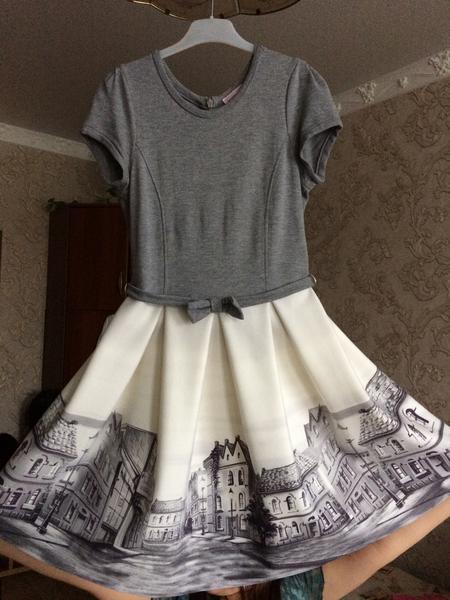 В отличном состоянии. Одето раза 3-4. Стильное, удобное, праздничное платье. Возможен обмен на брэндовую одежду р 12-14 в отличном состоянии.