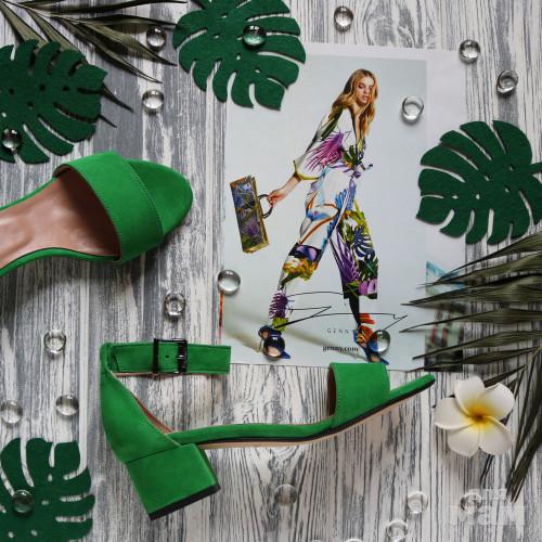 Босоножки из велюра цвета зеленый луг на обтяжном каблуке Арт.: 615-3/415-32Ок