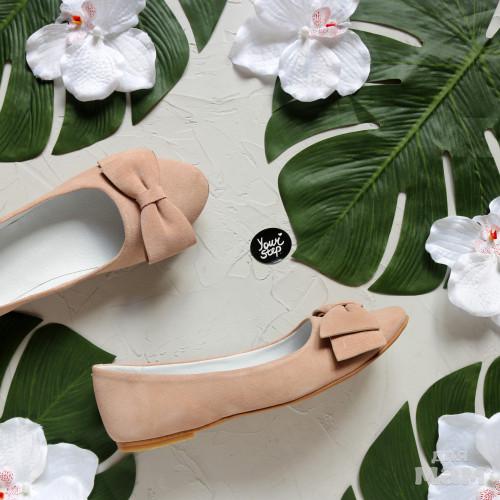 8. Балетки из замши цвета бледный персик Арт. 01-1-Бант Подкладка Козочка светлая, Р-р 38