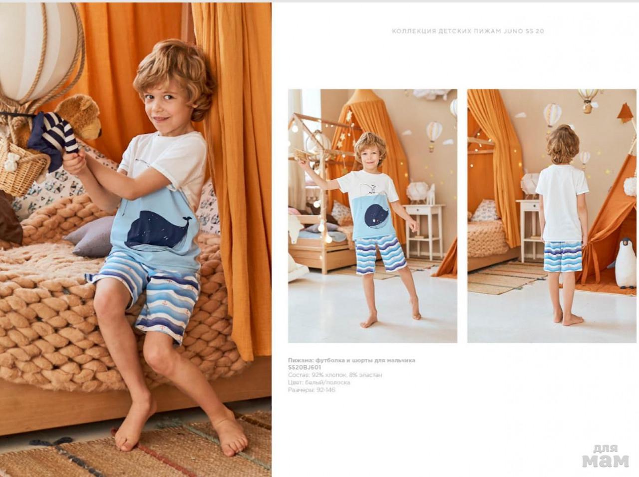 70.Пижама фуфайка (футболка), шорты д/мал Juno SS20BJ604 Sleepwear белый/темно-синий цена 399р