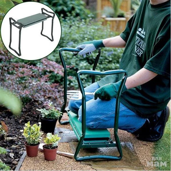 Конструкция скамейки позволяет перевозить ее с собой при необходимости в автомобиле или общественном транспорте. В сложенном виде скамья занимает мало места и ей легко найти место в кладовке. Прочный металлический каркас обеспечивает отличную устойчивость, а современное лакокрасочное покрытие надолго сохранит привлекательный внешний вид. Широкое сиденье из качественного пластика обеспечивает комфортное использование и способно выдержать нагрузку до 100 кг.Скамейку можно использовать в двух положениях, перевернув вы получите площадку, на которую вы сможете опереться коленями. Боковые поручни помогут подняться после работы, это особенно удобно для пожилых и людей с заболеваниями суставов. Садовая скамья перевертыш прекрасный подарок для садоводов и огородников, она позволит облегчить труд в огороде и сохранить здоровье ваших близких.