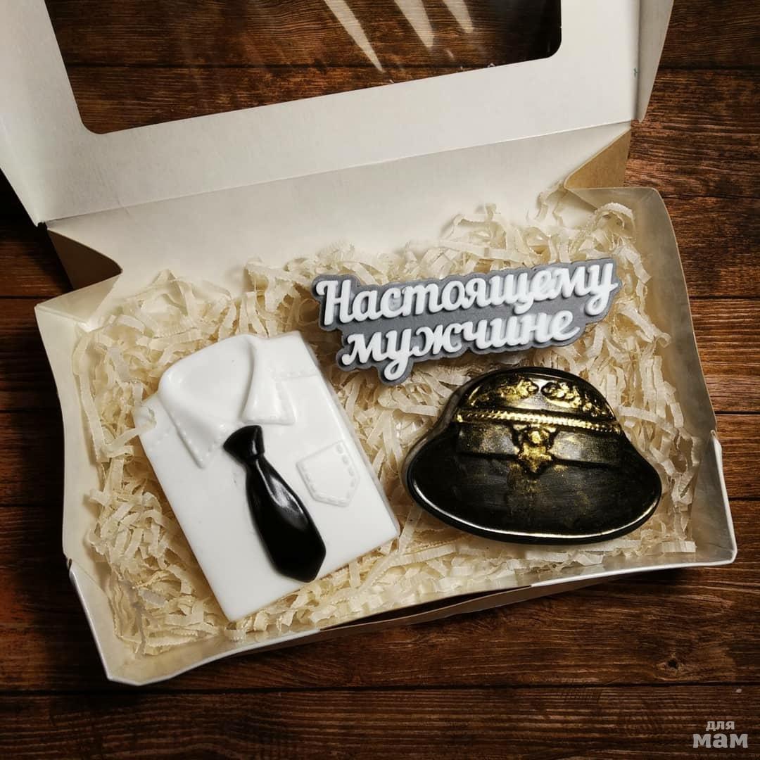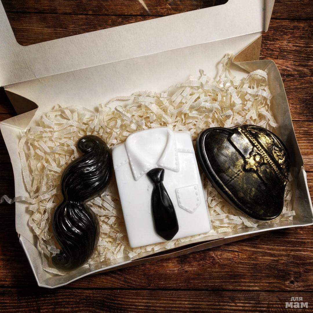 300 руб.Состоит: 1 большая шоколадка и 2 маленькие, упаковывается в крафт-коробку с лентой, также прикрепляется открытка для пожеланий