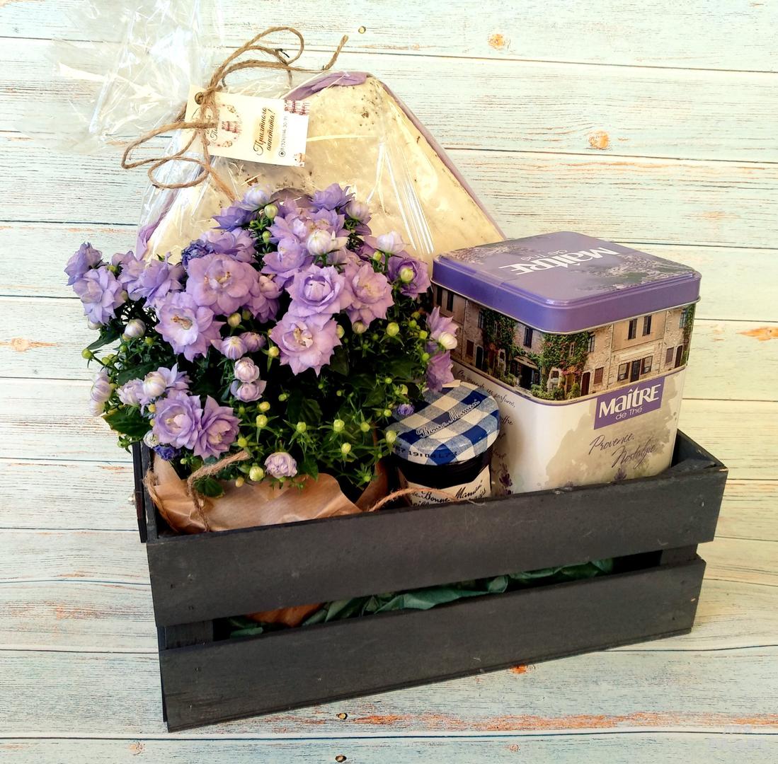 Упаковывается в крафт-коробку с лентой, также прикрепляется открытка для пожеланий