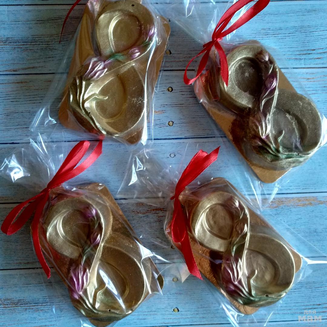 При изготовление используется итальянский молочный шоколад и пищевой кандурин.