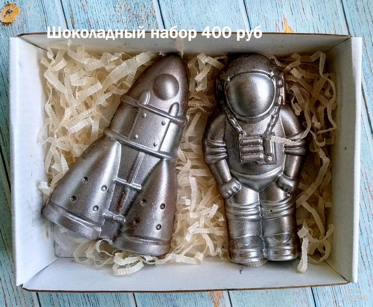 400 руб.Состоит: из 2 шоколадок, леденец, упаковывается в крафт-коробку с лентой, также прикрепляется открытка для пожеланий