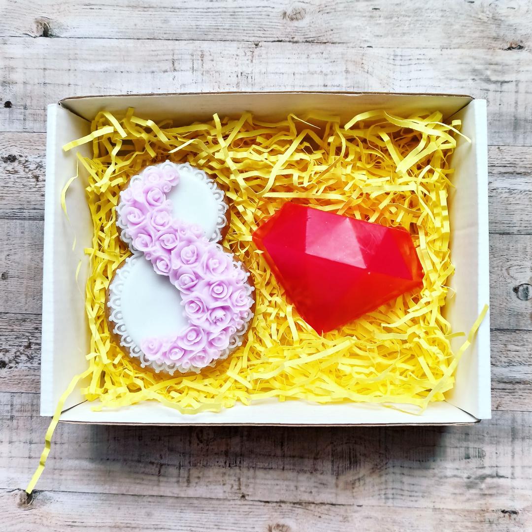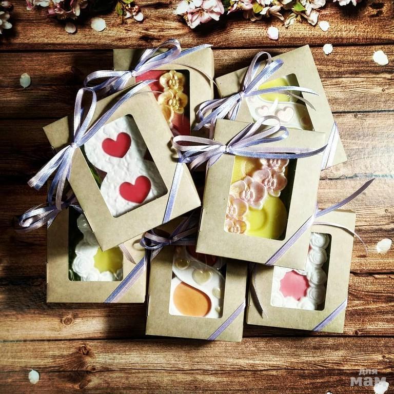 упаковывается в крафт-коробку (10*8 см) с лентой.