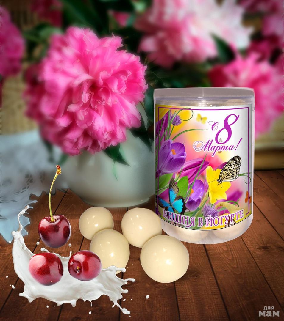 И целые ягоды: Малина, Клубника, Черника и Вишня, в нежнейшем йогурте и белом шоколаде.