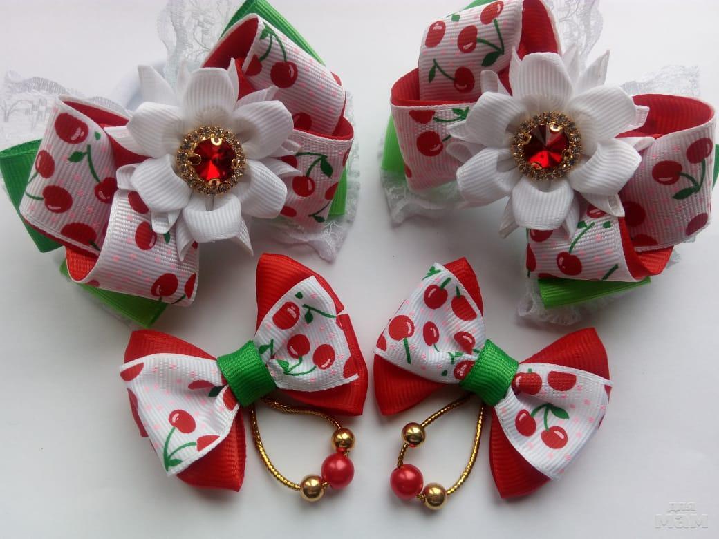 Сочный набор "Спелая вишенка". Нежные и милые бантики для теплых денечков. Большие бантики на резиночках, маленькие по вашему желанию.