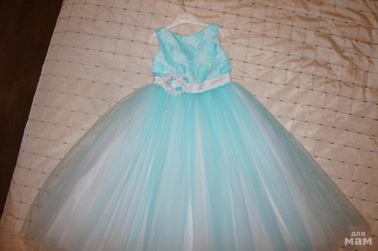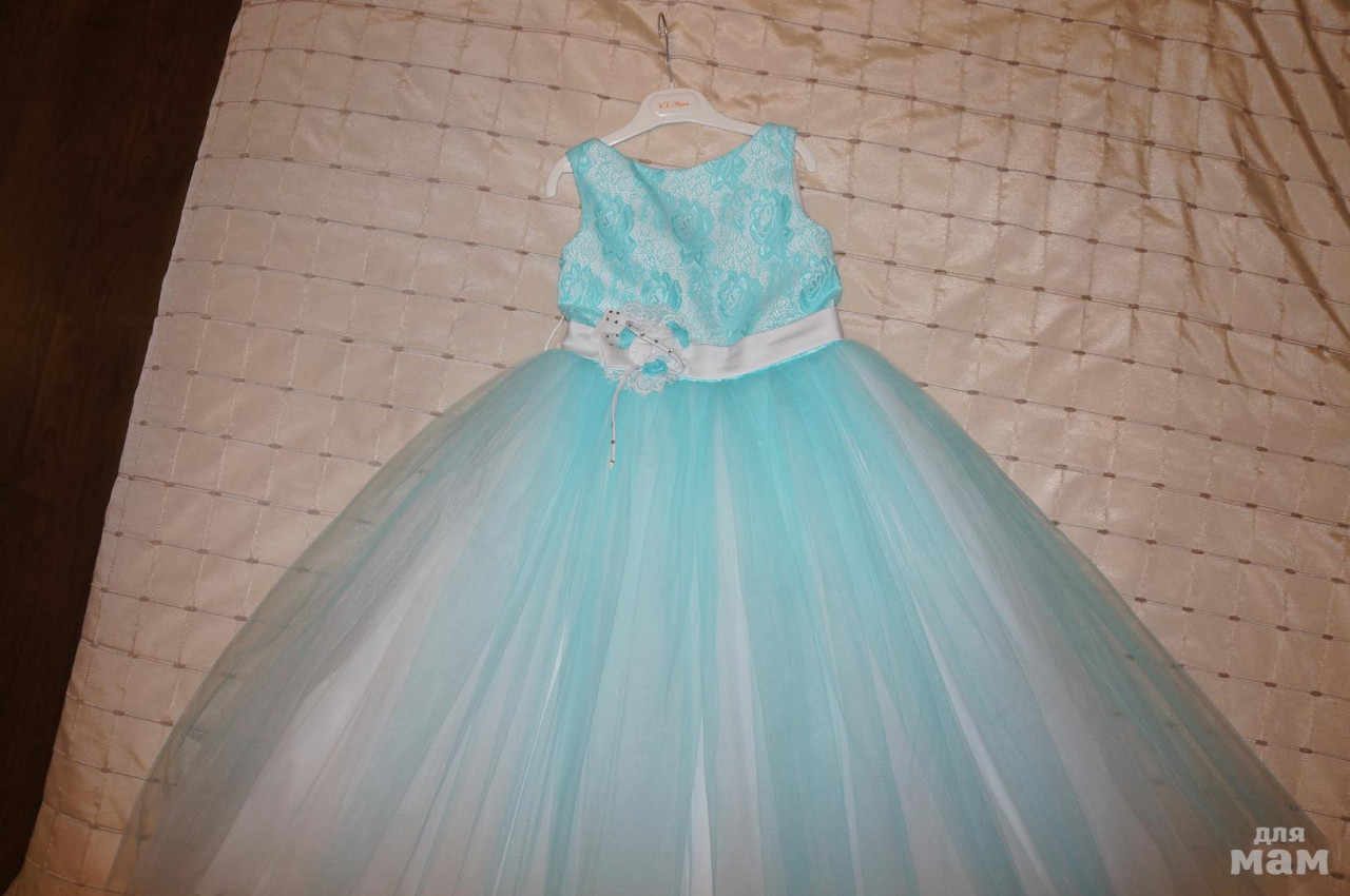 Девочки , продам очень красивое платье , нежно-бирюзового цвета! Юбочка с кольцами в подарок! Сзади есть утяжка на спинке, поэтому можно подогнать под любую фигуру. Размер 34 , на рост 128-134,можно и раньше. Б/У один раз , после химчистки , в идеальном состоянии , как новое! 3800руб.