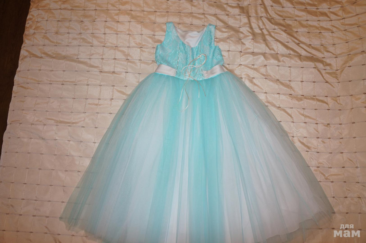 Девочки , продам очень красивое платье , нежно-бирюзового цвета! Юбочка с кольцами в подарок! Сзади есть утяжка на спинке, поэтому можно подогнать под любую фигуру. Размер 34 , на рост 128-134,можно и раньше. Б/У один раз , после химчистки , в идеальном состоянии , как новое! 3800руб.