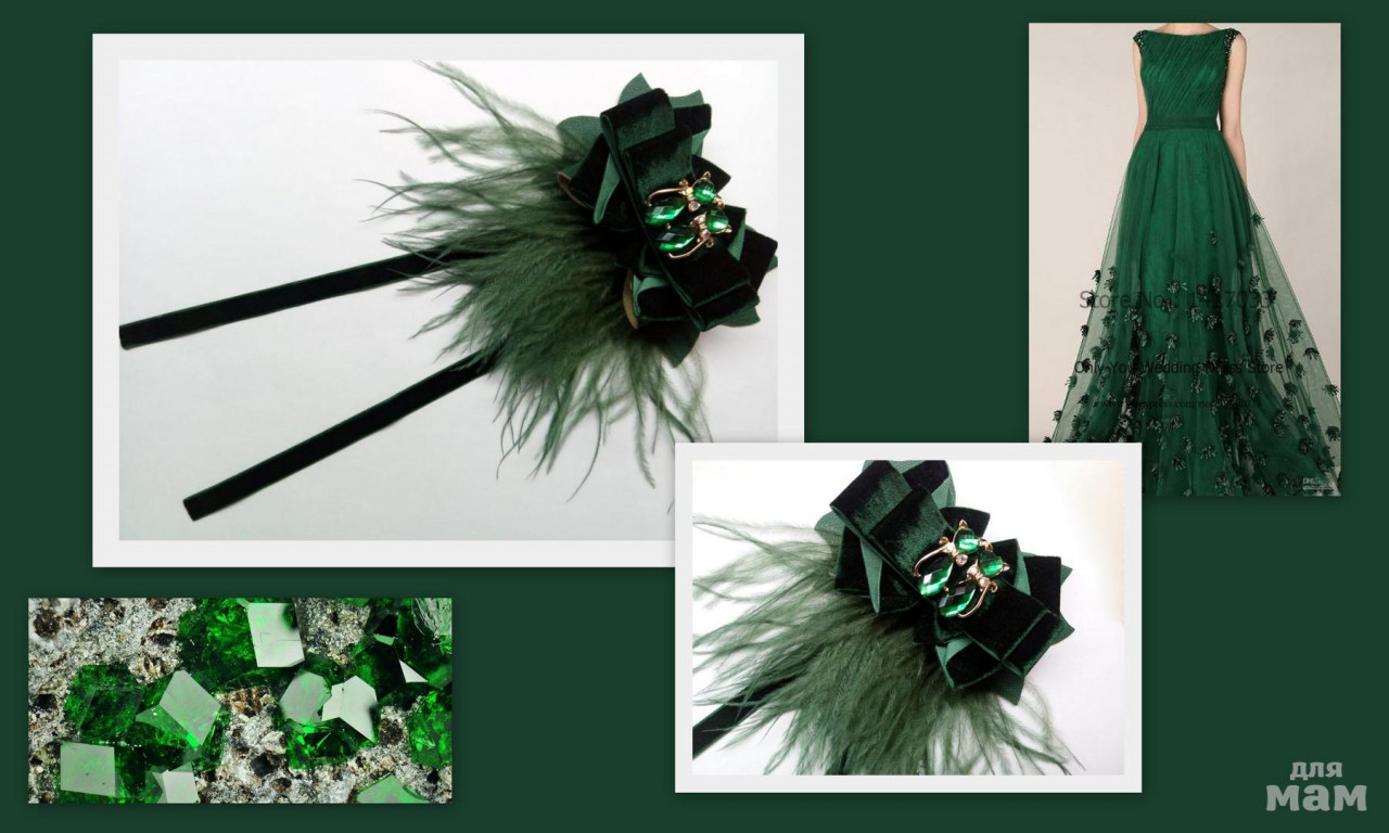 Это самое шикарное дополнение из перьев в изумрудной серии. Густое, длинное. Но и в тоже время необычайно воздушное. Сам бант выполнен из бархата и кожи. Не на каждый день однозначно.