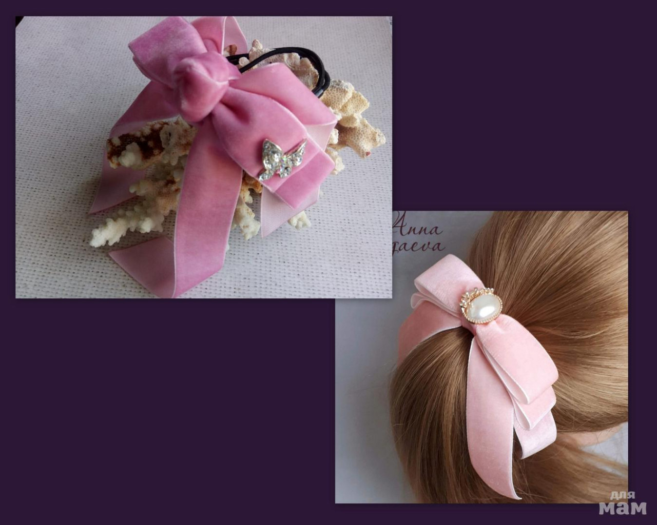 5) Нежная романтика с добавлением бархата. Бантики очень универсальны, подойдут и для хвостиков и для косичек.