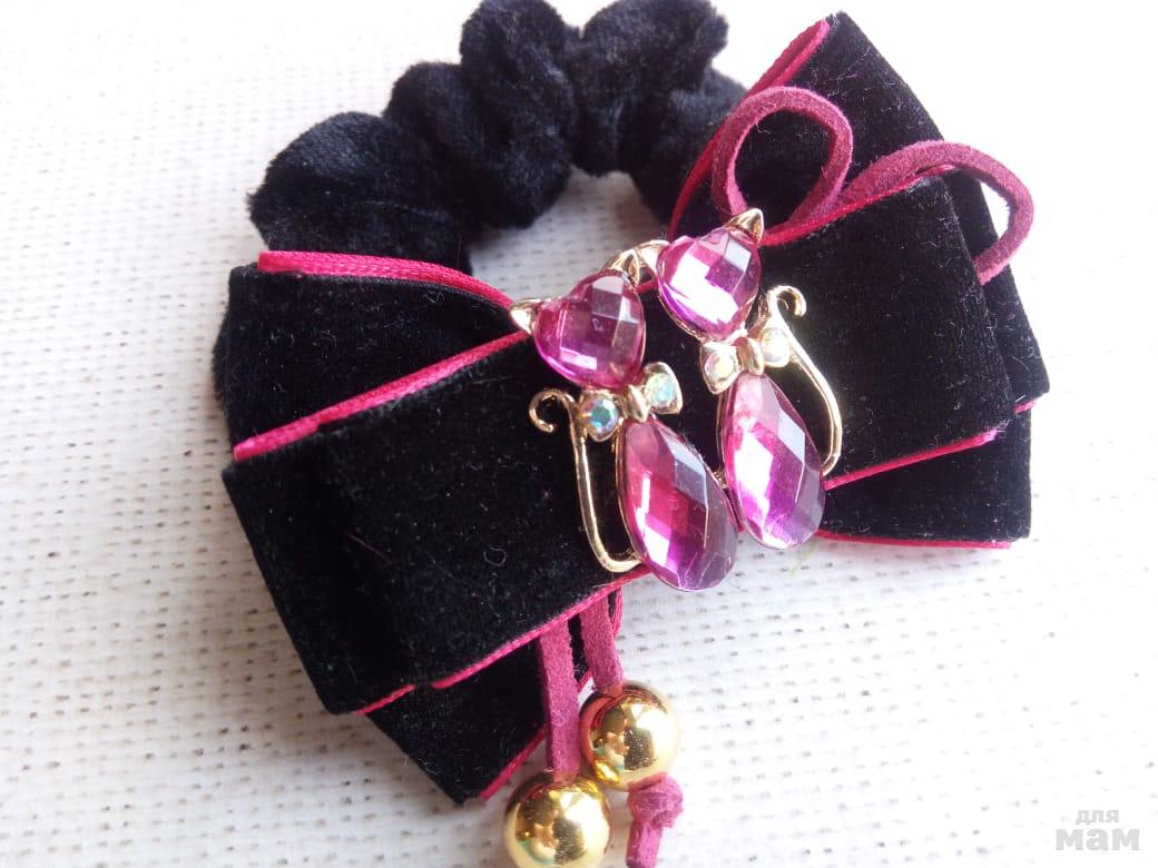 2) Еще одна бархатная резиночка для девушек постарше. Строго и лаконично без лишних мимишевств. Смотрится в прическе как у манекена на коллаже.