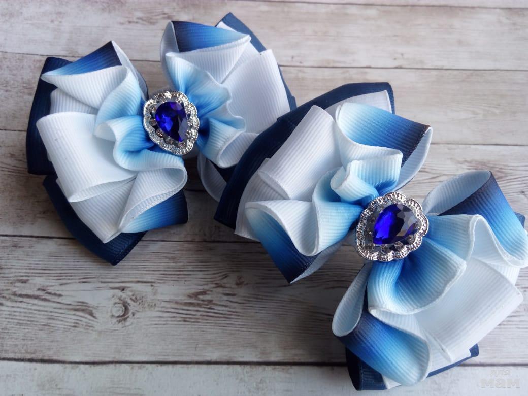 4) Новая модель бантиков к синей форме. Размер 8-9 см. Нарядно и необычно!