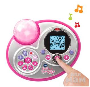 Микрофон на стойке с функцией караоке от Kidi Super Star - полезная игрушка, благодаря которой ребенок сможет ощутить себя настоящей эстрадной звездой. На выбор есть восемь встроенных песен с интересной анимацией, которую можно просмотреть на небольшом экране, расположенном на панели управления. Музыкальная караоке станция оснащена разъемом для подключения телефона или MP3 плеера, есть функция записи песен, изменения голоса, а также режим Магия музыки, который позволяет убрать голос исполнителя из композиции и самому исполнять соло-партии. Светящийся диско-шар крутится во время работы станции, сопровождая выступление, делая его еще более зрелищным. Также в игрушке предусмотрено шесть встроенных игр и тренажер со скороговорками.