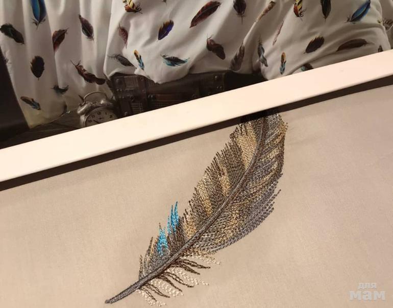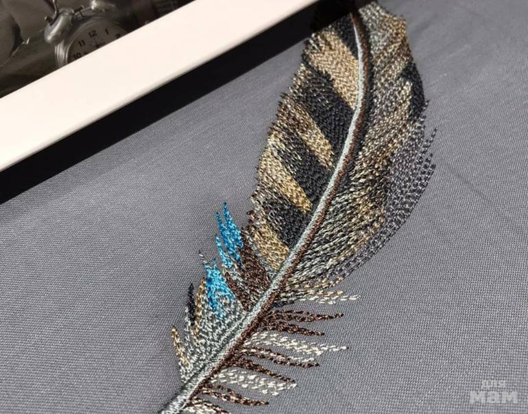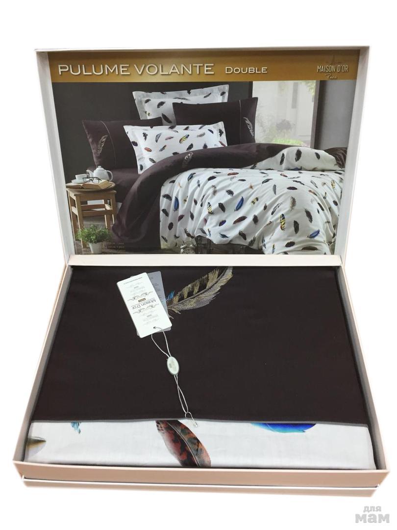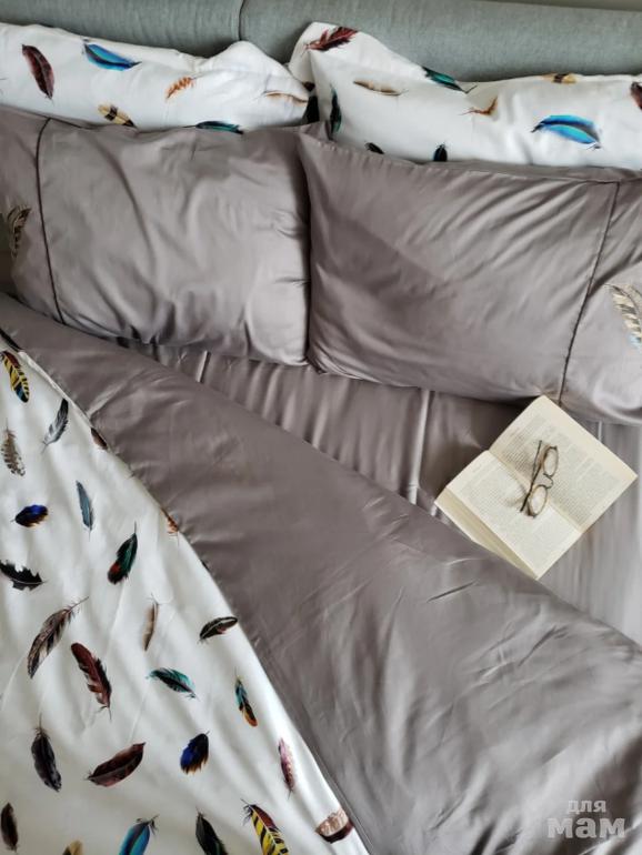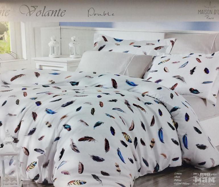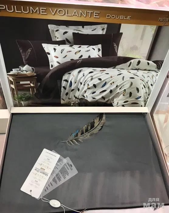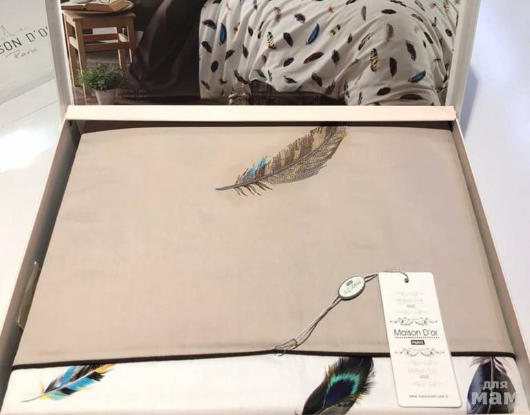 Вышивка перья и принт КПБ из САТИНА класса Люкс с 4 наволочками размер Евро,