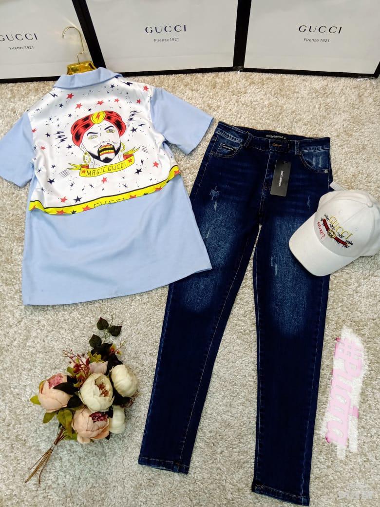 Рубашечка Gucci 😎😎😎1300 руб ,,S M,, обьемная👍🏻джинсы DG 🌺🌺🌺 1S M,, высокая посадка 👌,, узкие