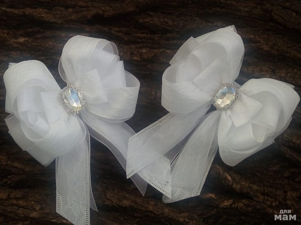 3) И еще одни нарядные представители для праздничных дней. Размер бантиков 10 см. Изготовлены из парчи и органзы. На солнышке просто сияют!