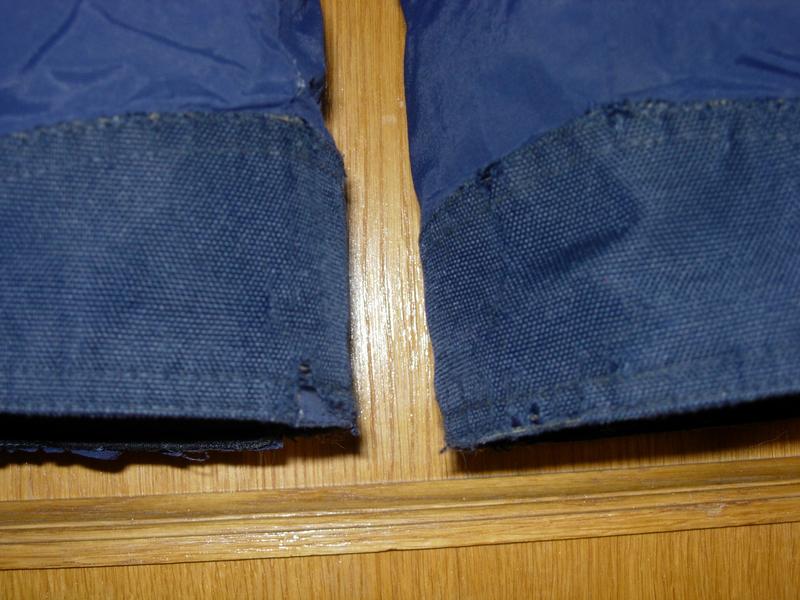 Полукомбинезон в целом в хорошем состоянии, но низ штанин изрядно потрепан. В принципе, можно полностью сменить этот слой кордуры и будет отлично, колени не потерты, попа тоже.