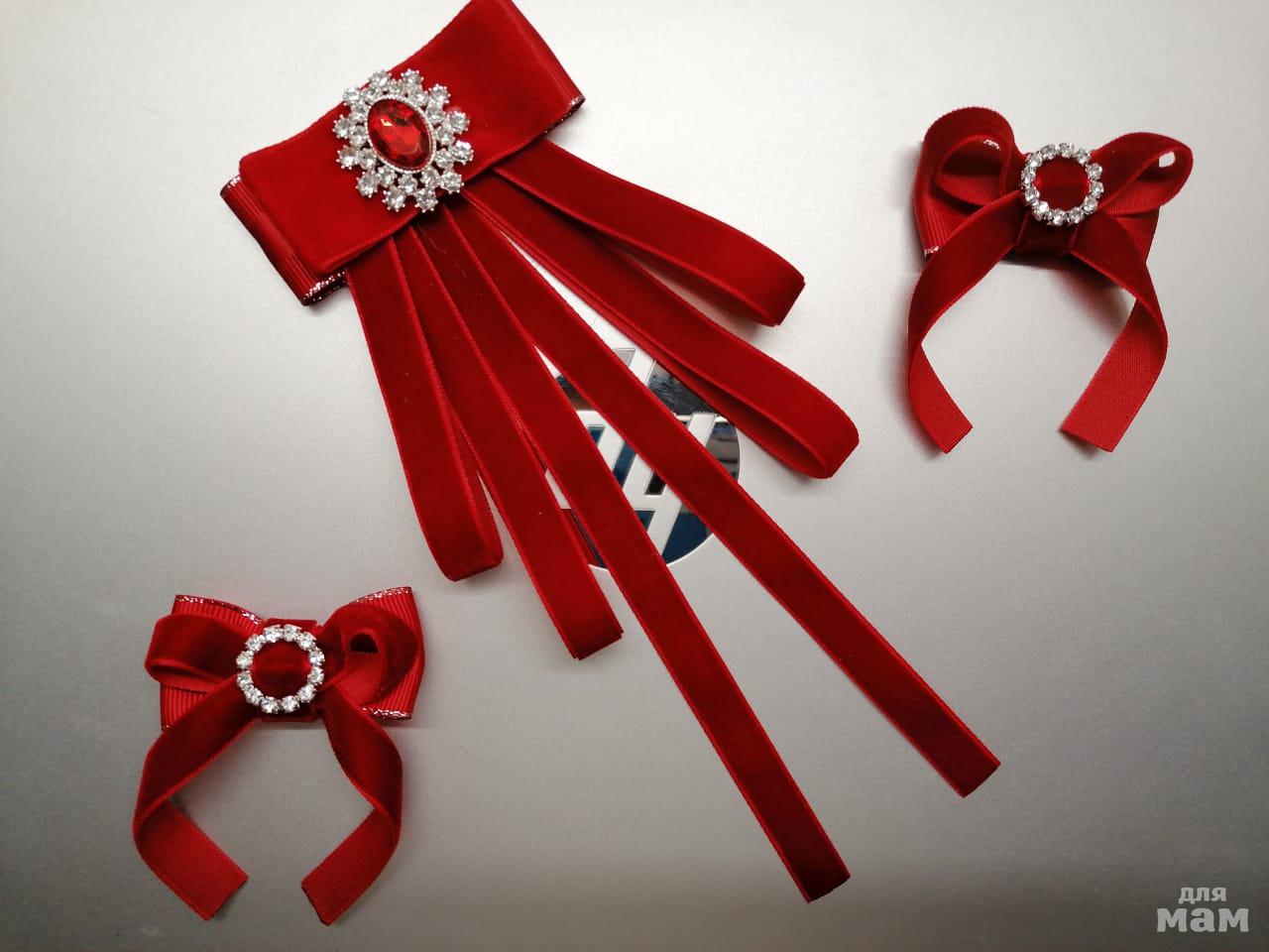 Комплект из бархата и декоративной комбинированной ленты.