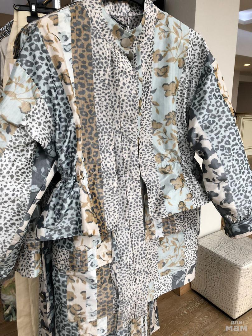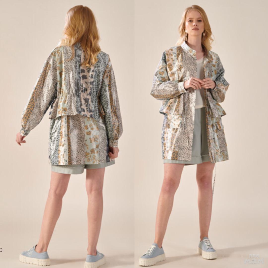 Комфортная куртка-парка прямого силуэта выполнена из высококачественного французского полиэстра с авторским принтом. По переду и спинке обработана длинная отлетная кокетка с кулисой. Линия горловины округлой формы, оформлена воротником стойкой. Рукава рубашечного кроя, по линии низа со сборкой и притачными манжетами. Застежка-планка на петли и пуговицы. Модель с большими функциональными накладными карманами. Изделие представлено в одном цвете.