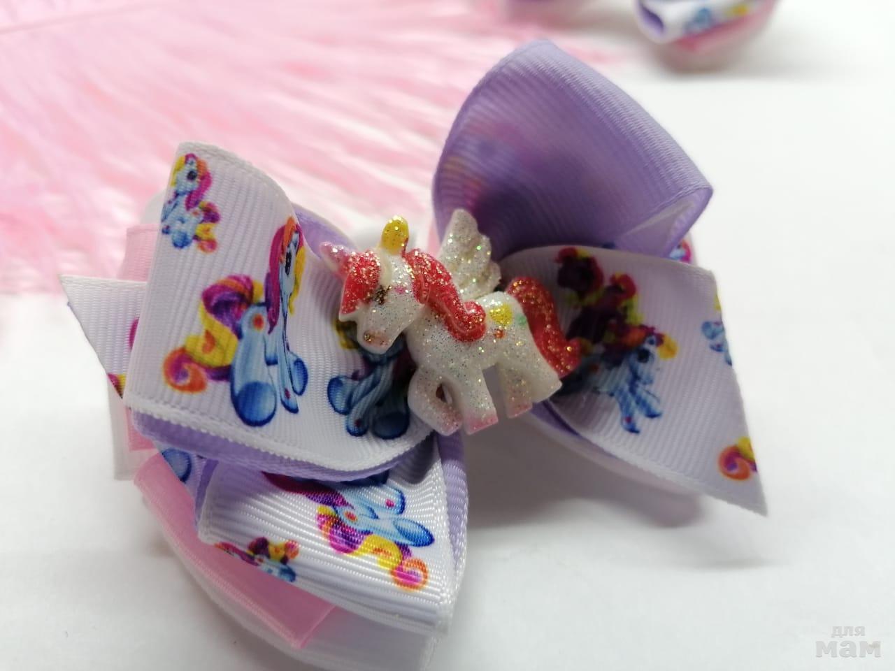 5) Бантики единорожки. В жизни расцветка более нежная и спокойная. Размер 7-4,5 см.