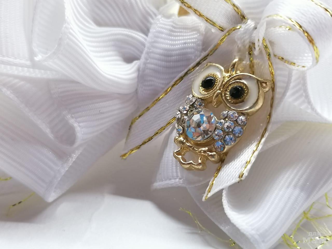6) Школьные бантики с потрясающей совушкой! Камушки - огонь!!! Размер 8 см.