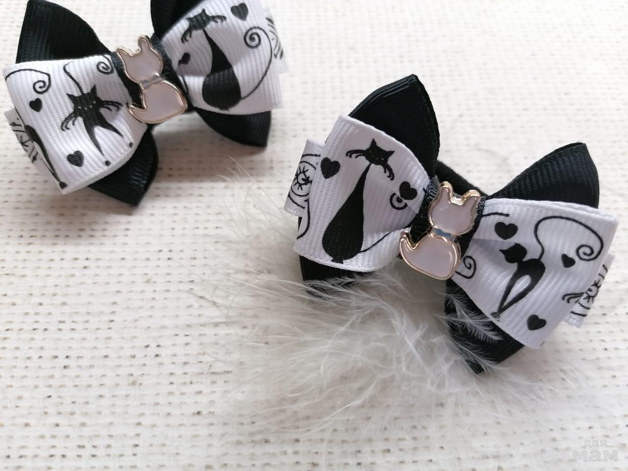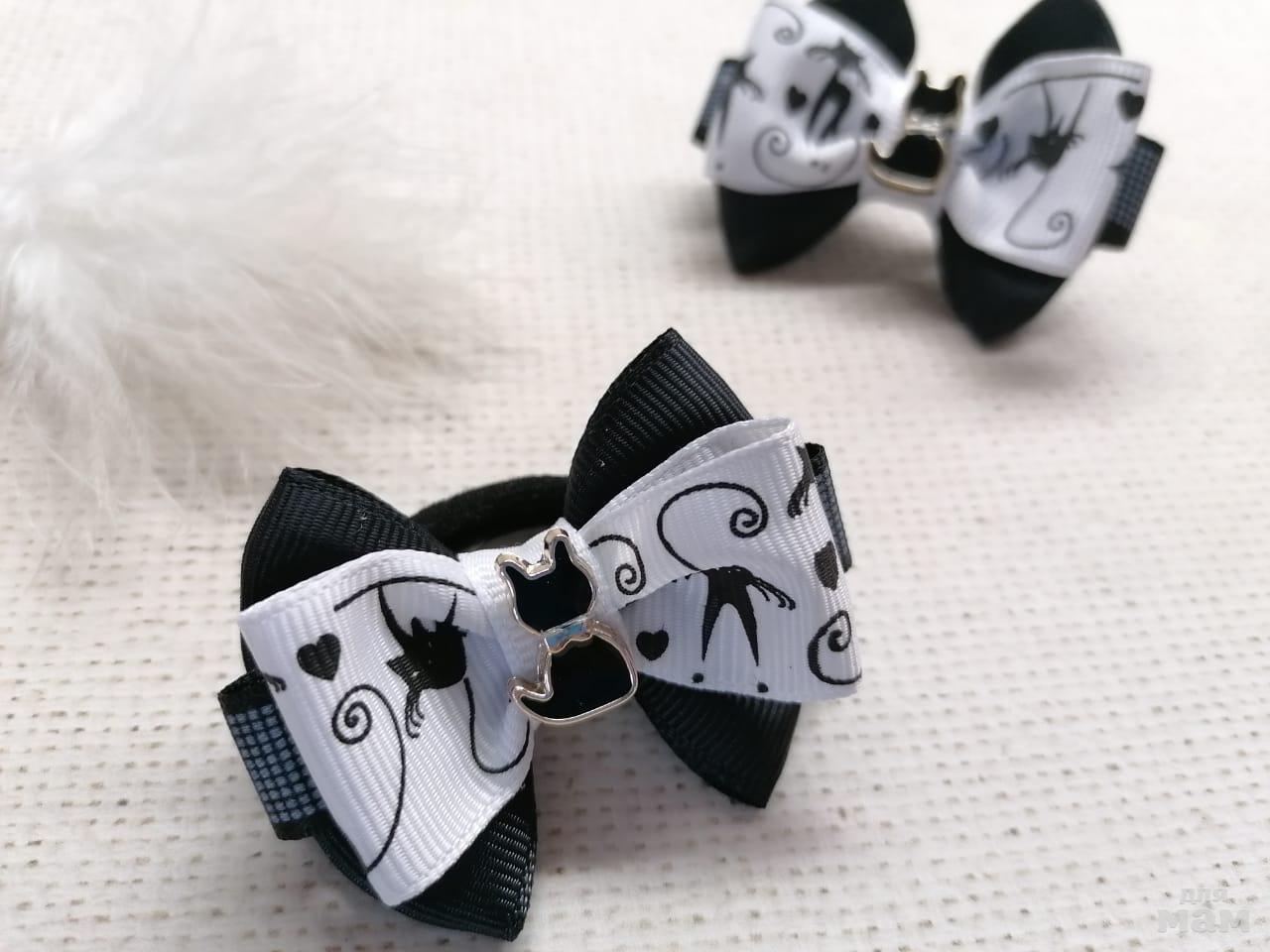 11) Черный коте & белый коте. Бантики-малютки всего 5-6 см. Для косичек супер!