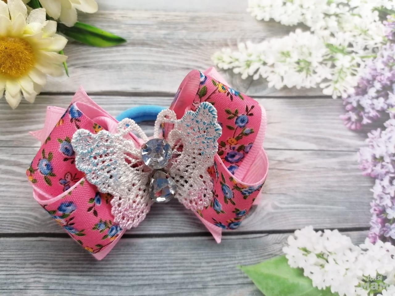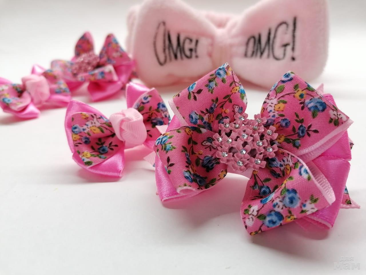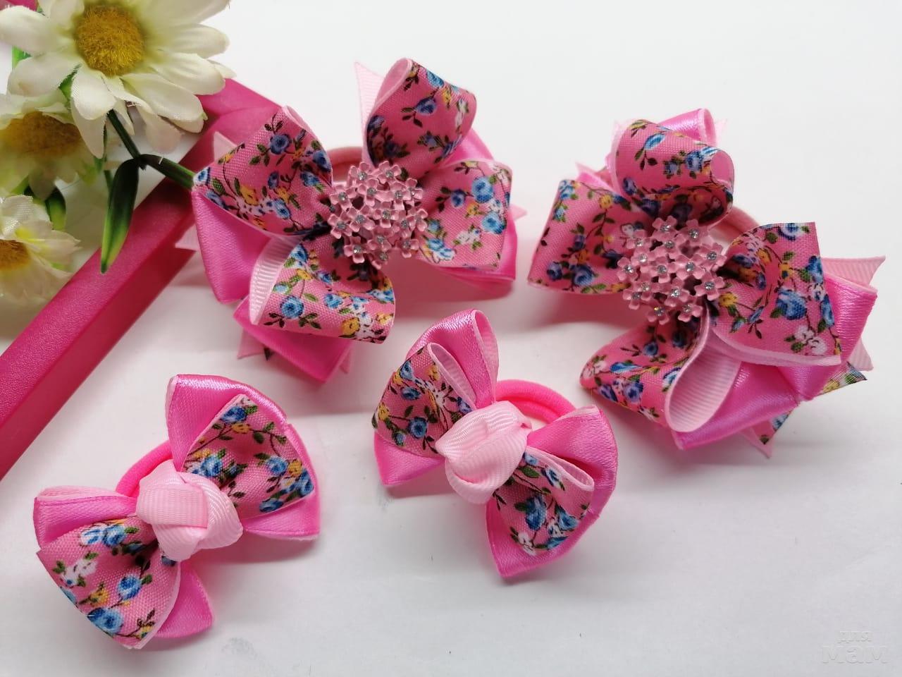 8) Летний набор из четырех резиночек. Большие бантики 7 см. Маленькие 5 см.